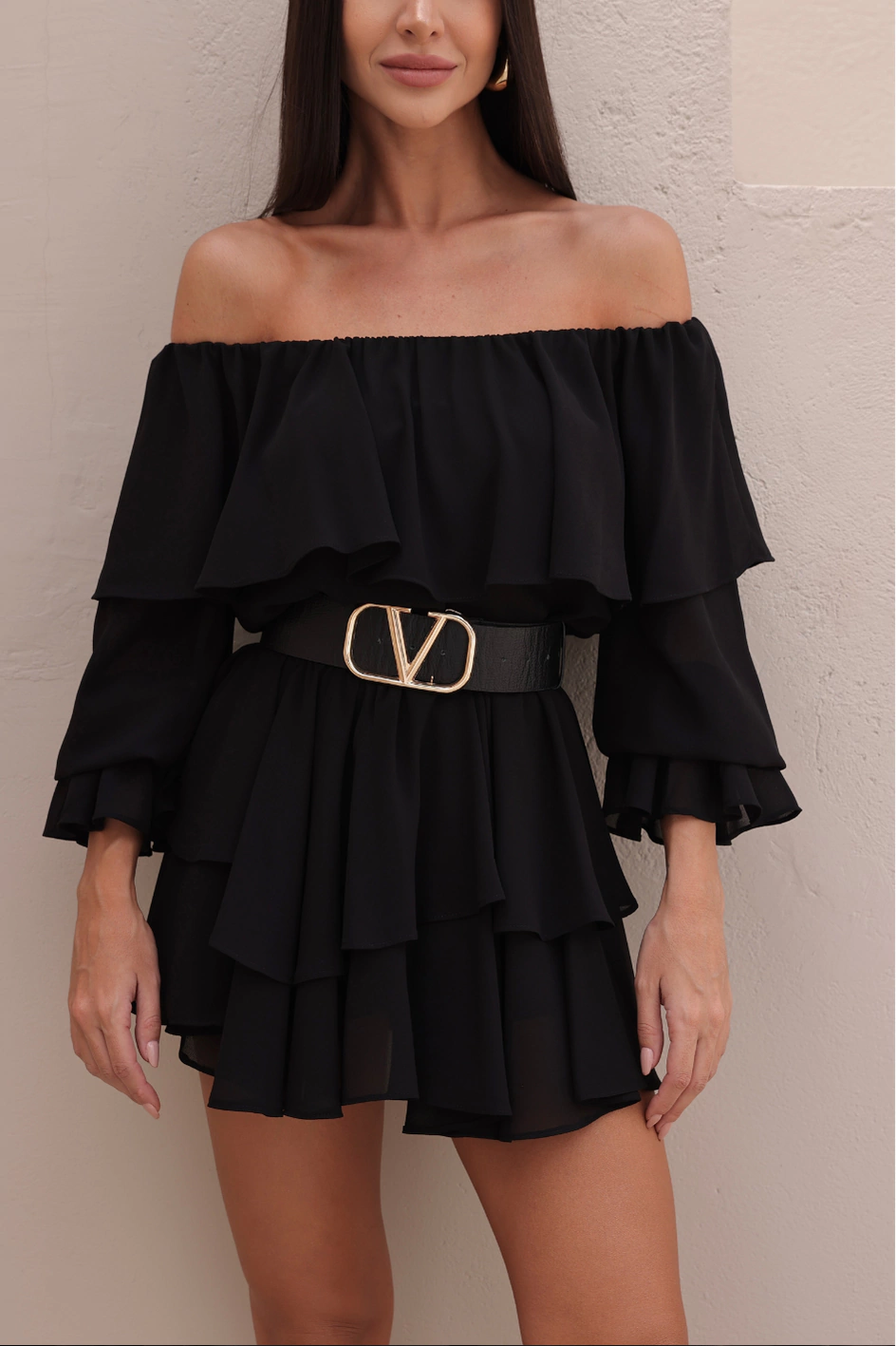 O Conjunto Boho Chic Preto é a união perfeita entre charme e conforto, ideal para quem deseja um look moderno, leve e com personalidade. Com design exclusivo e toque artesanal, ele é perfeito para festas ao ar livre, casamentos no campo, viagens, almoços sofisticados ou eventos casuais com estilo. Confeccionado em tecido crepe leve, o conjunto traz uma blusa cropped com decote ombro a ombro e mangas bufantes 3/4, que criam uma estética boho chic sofisticada. O elástico no decote garante ajuste confortável ao corpo, enquanto o comprimento curto da blusa valoriza a silhueta com leveza e frescor. A parte inferior é composta por um shorts saia com sobreposição de babados, que garante fluidez e movimento a cada passo. O cós com elástico proporciona caimento confortável e elegante, moldando-se ao corpo com naturalidade.