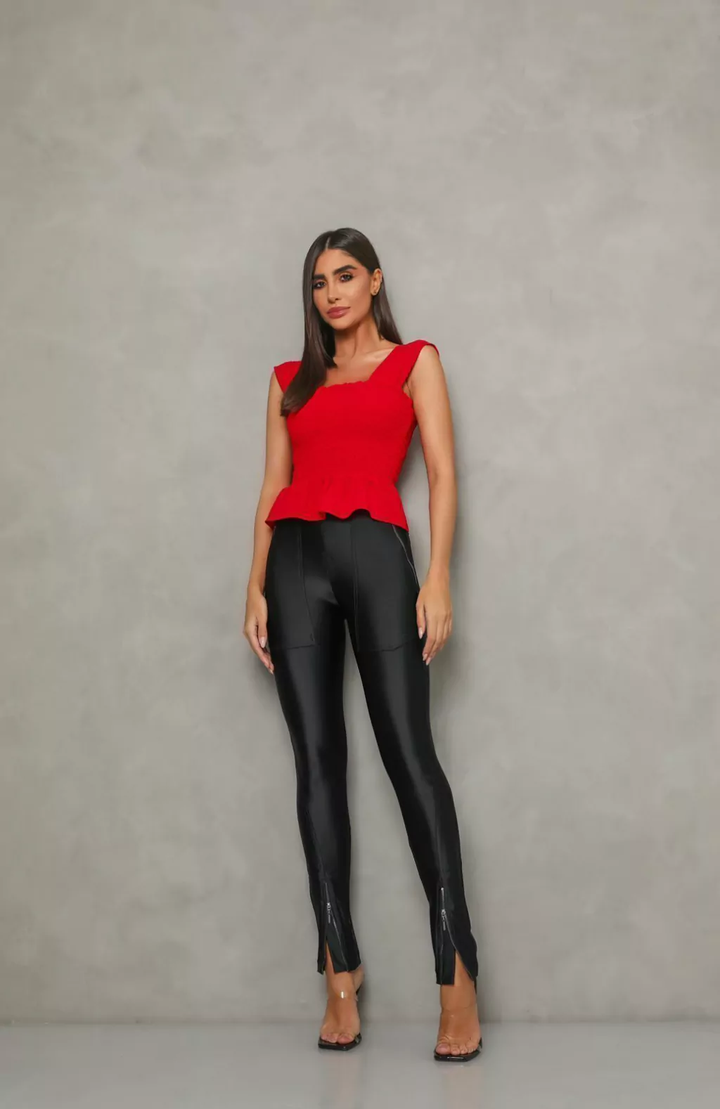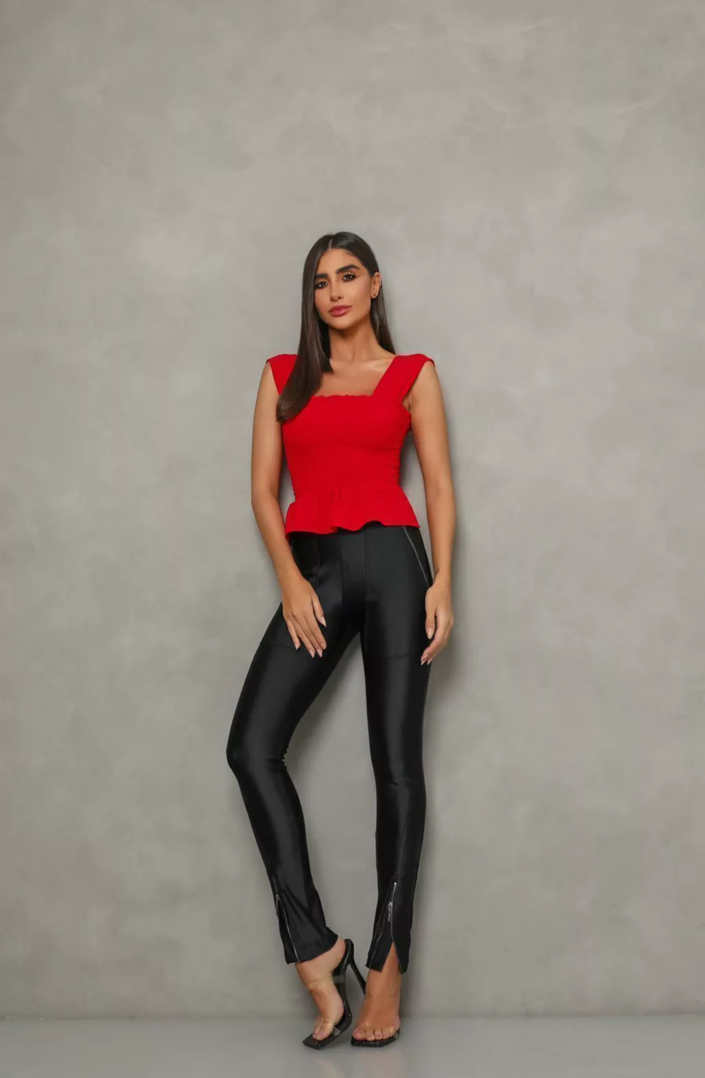 Cropped em VISCOCREPE, possui decote quadrado, alças largas e lastéx na parte inferior.
