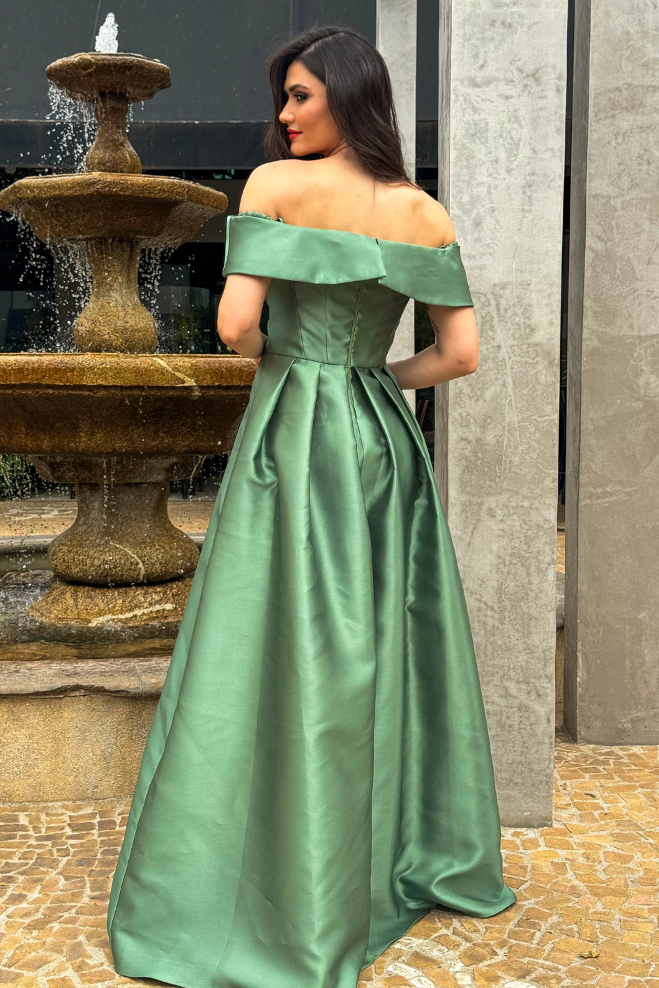 VESTIDO DE FESTA DECOTE PRINCESA VERDE OLIVA
