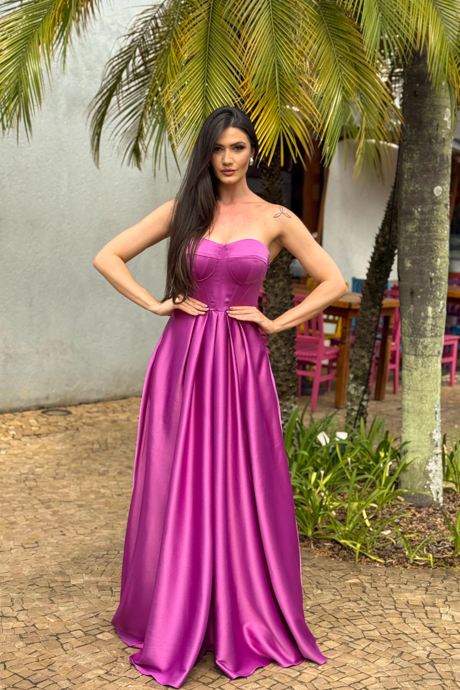 Vestido Longo Tomara que Caia em Cetim Roxo