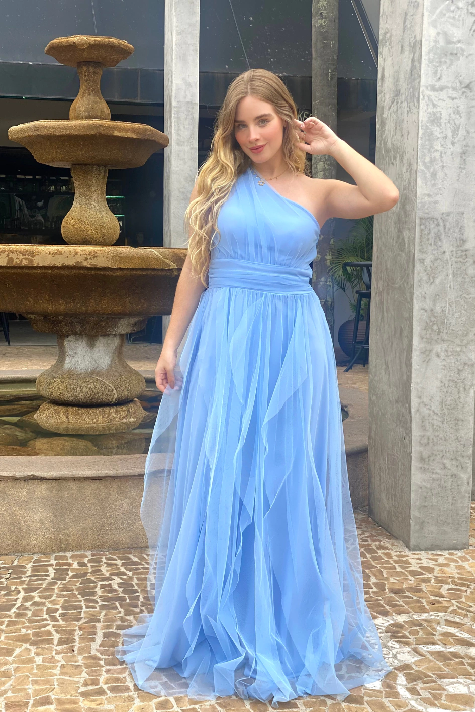Encontre o Vestido de Festa Versalhes Azul Serenity perfeito para eventos especiais como casamentos, formaturas, e festas de gala. Este vestido longo é a escolha ideal para quem busca elegância e sofisticação, destacando-se com um design moderno e atemporal. Feito em tule de alta qualidade, o vestido oferece um caimento impecável e um toque de luxo que faz toda a diferença em ocasiões memoráveis.