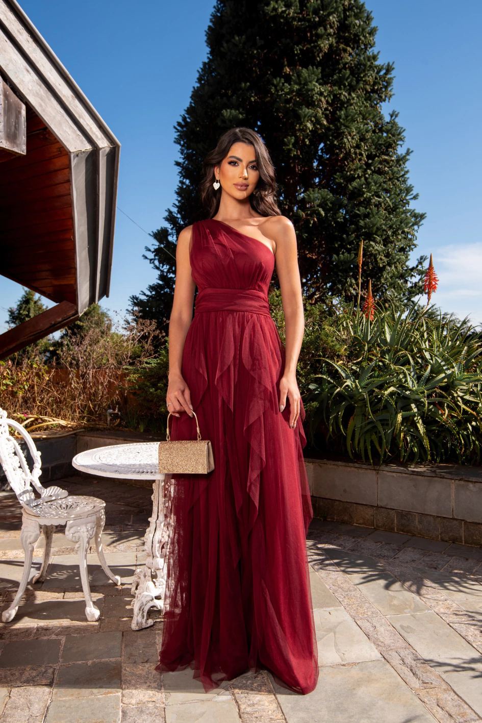 Encontre o Vestido de Festa Versalhes Marsala perfeito para eventos especiais como casamentos, formaturas, e festas de gala. Este vestido longo é a escolha ideal para quem busca elegância e sofisticação, destacando-se com um design moderno e atemporal. Feito em tule de alta qualidade, o vestido oferece um caimento impecável e um toque de luxo que faz toda a diferença em ocasiões memoráveis.