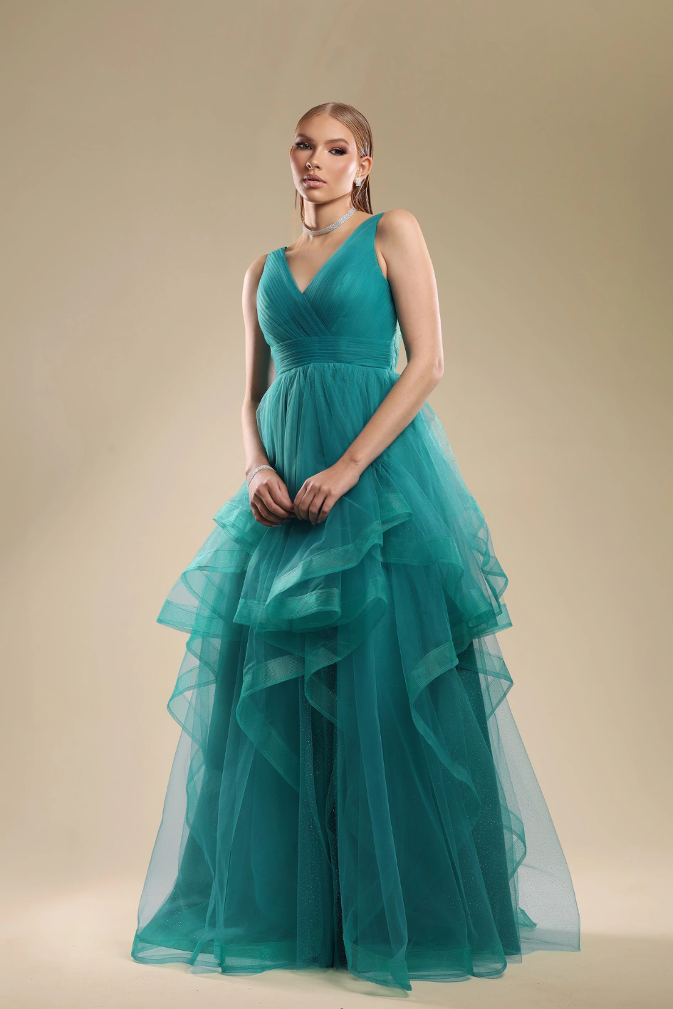 Encante-se com o Vestido Longo em Tule com Camadas Azul Esverdeado e transforme qualquer ocasião em um momento inesquecível! Garanta o seu na TothStore e viva a experiência de vestir elegância e estilo.
